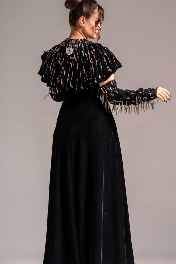 Peach cape with metallic roses and ...