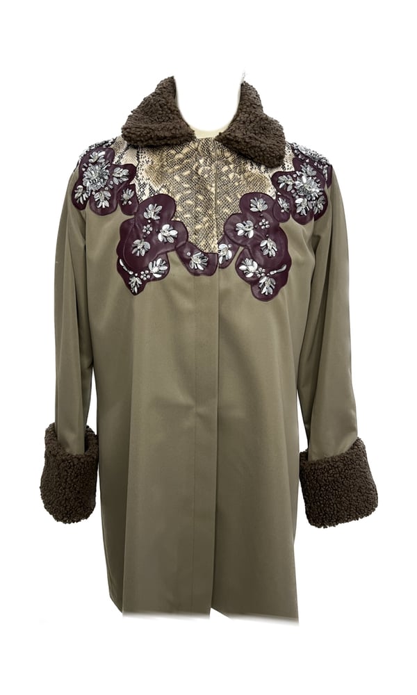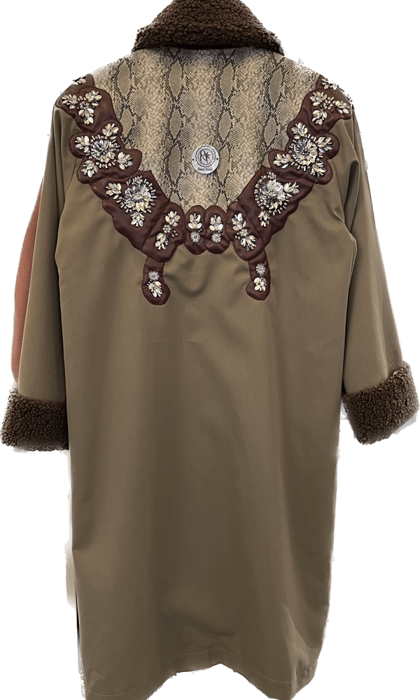 olive trench coat with Unique embro...