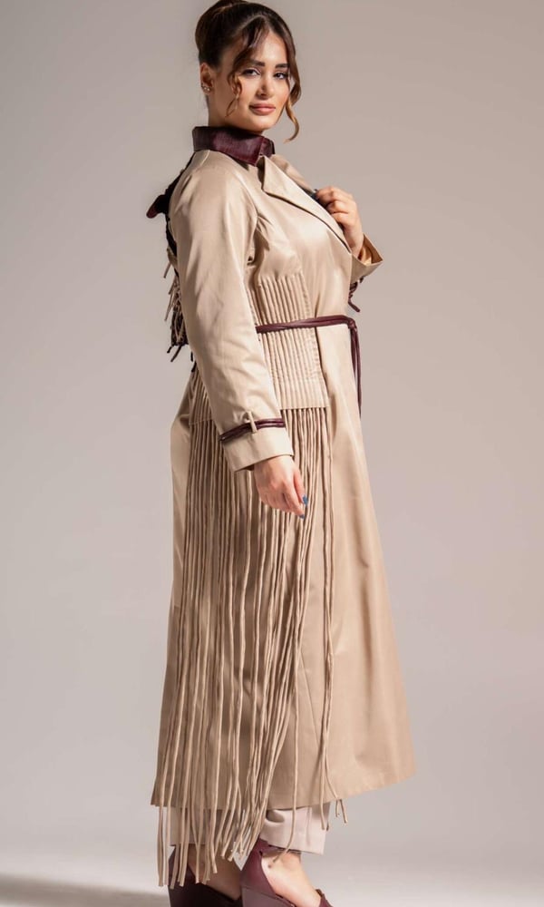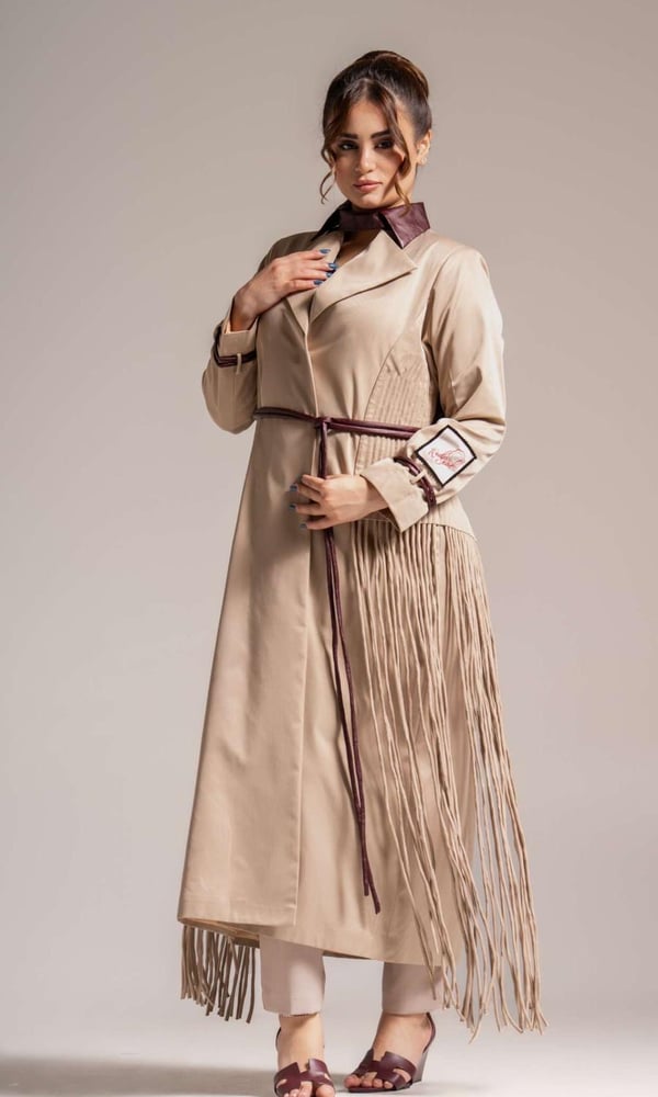 olive trench coat with Unique embro...