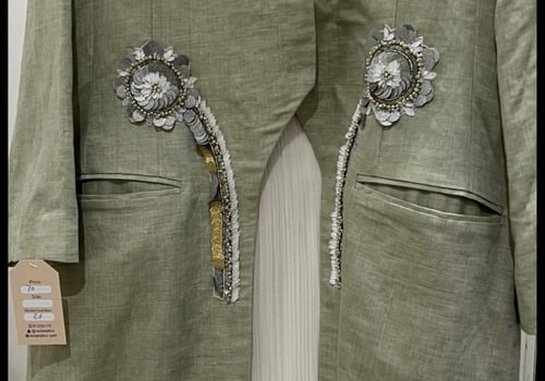 A set consisting of an embroidered linen blazer and a pleated skirt