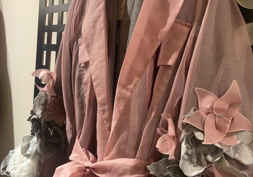 A set of two pieces, a shirt and a gazar jacket decorated on the sleeves with prominent flowers