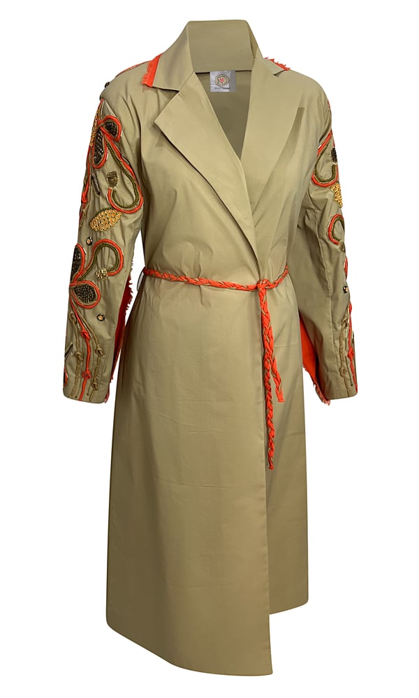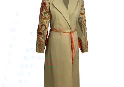 Beige jacket with unique embroidery on the sleeves