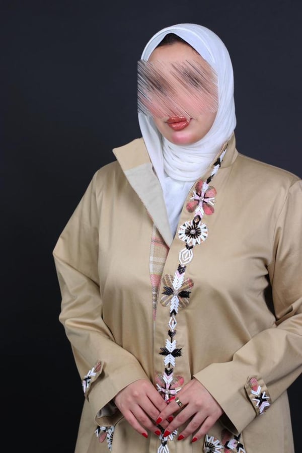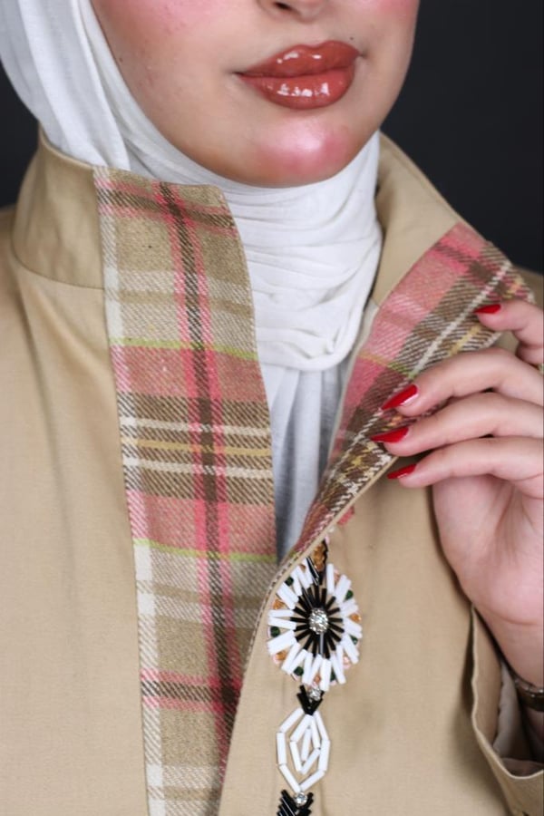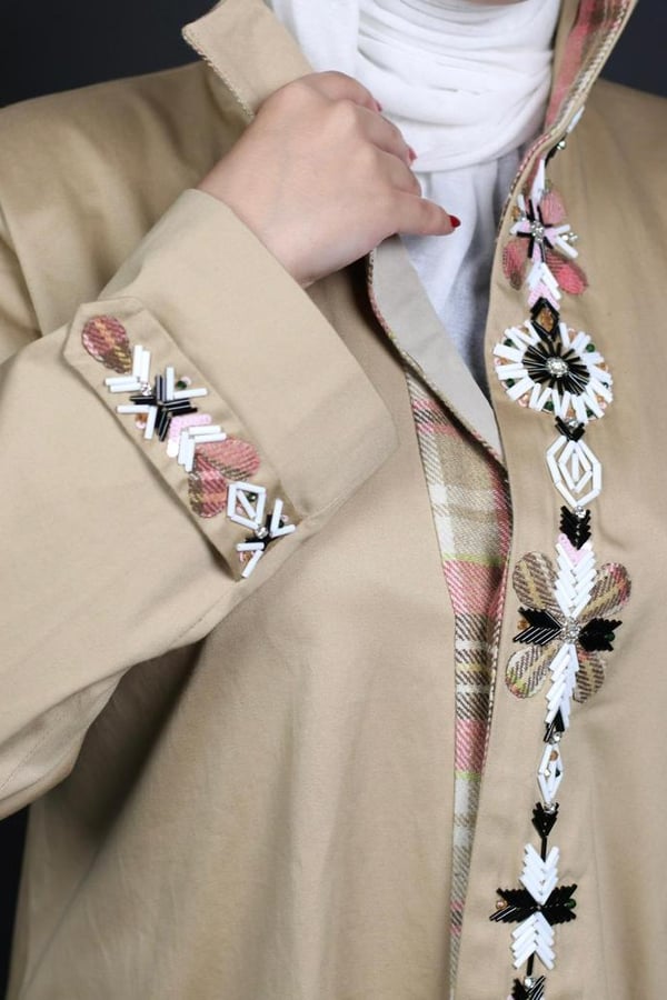 olive trench coat with Unique embro...