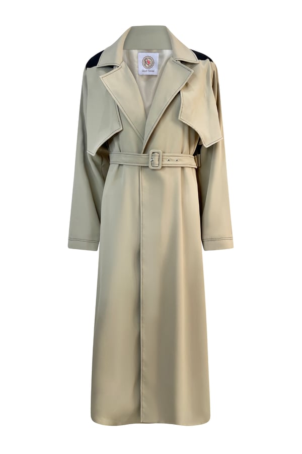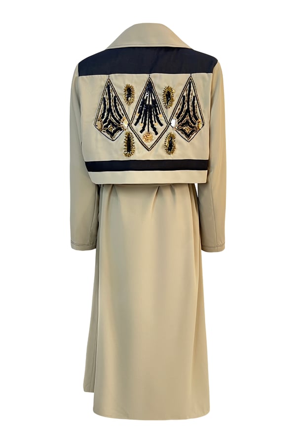 Beige trench coat with beading on the back