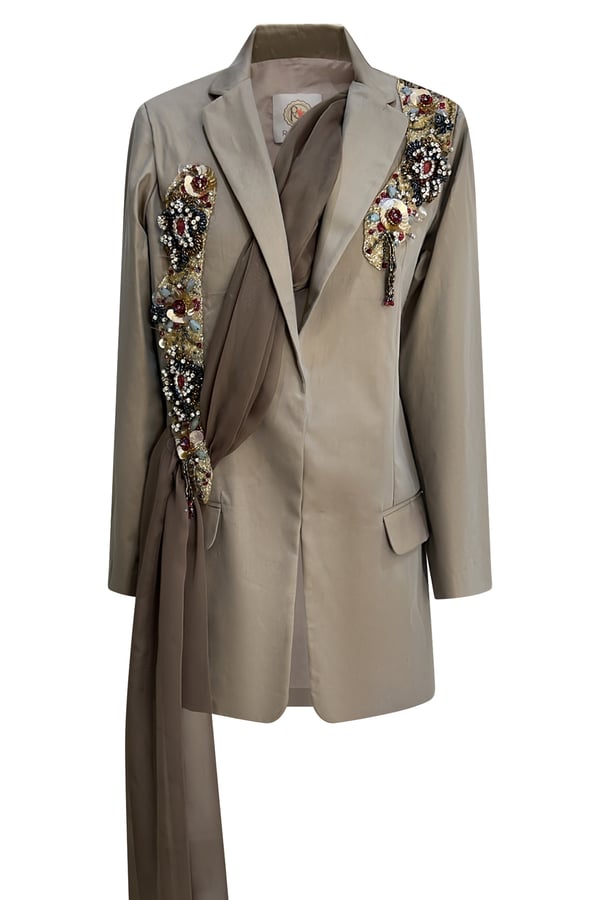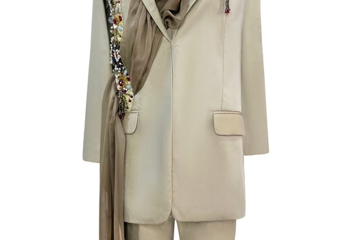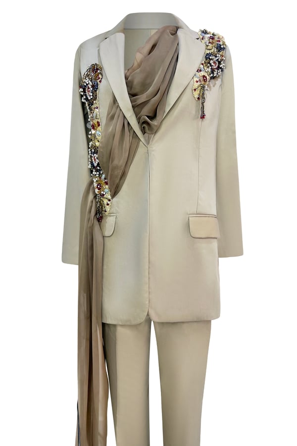 Blazer and pants of elegant fabric and chiffon embroidered with the most beautiful beads
