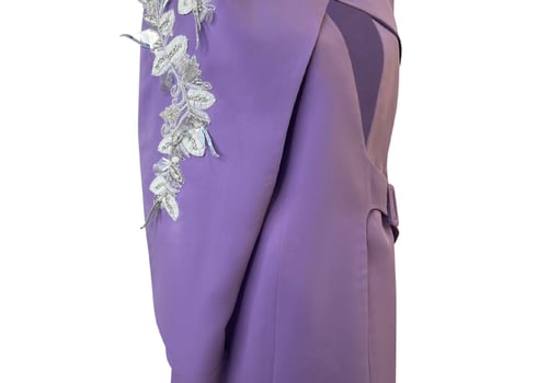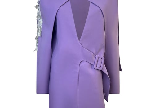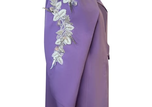 Blazer with a new cut in mauve color, with prominent white beads