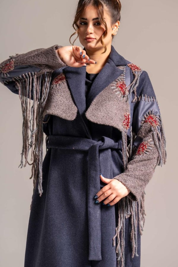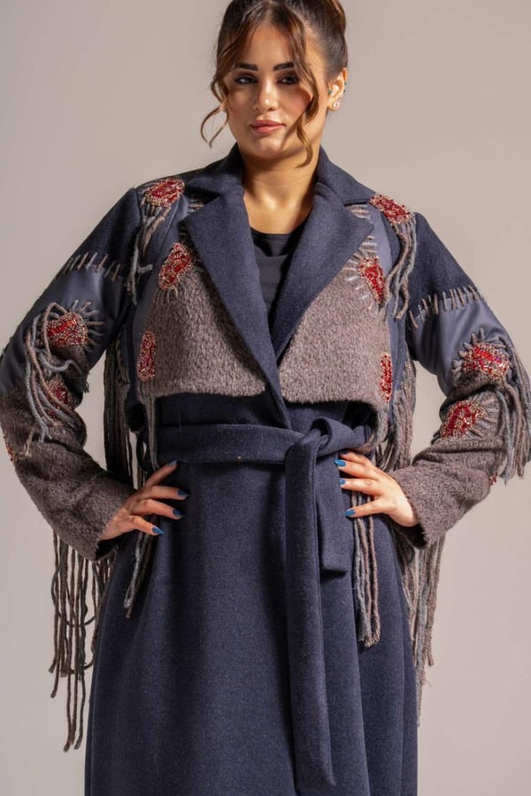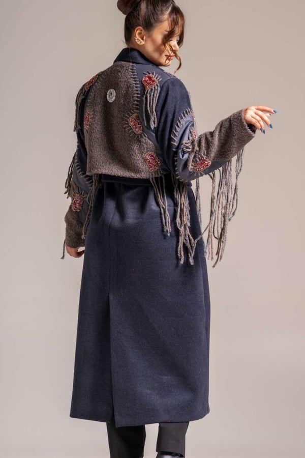Felt jacket embroidered with threads and embroidered with beautiful patterns and stones