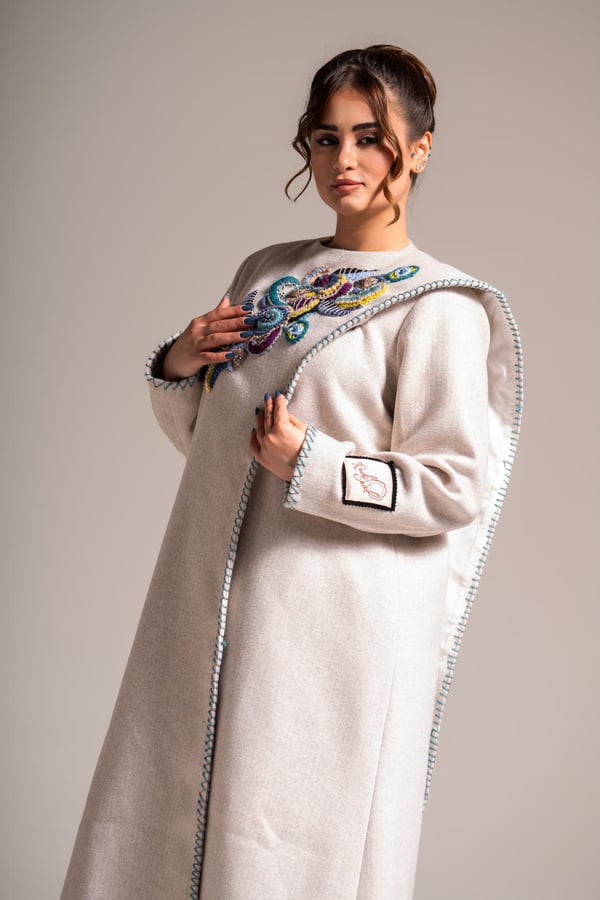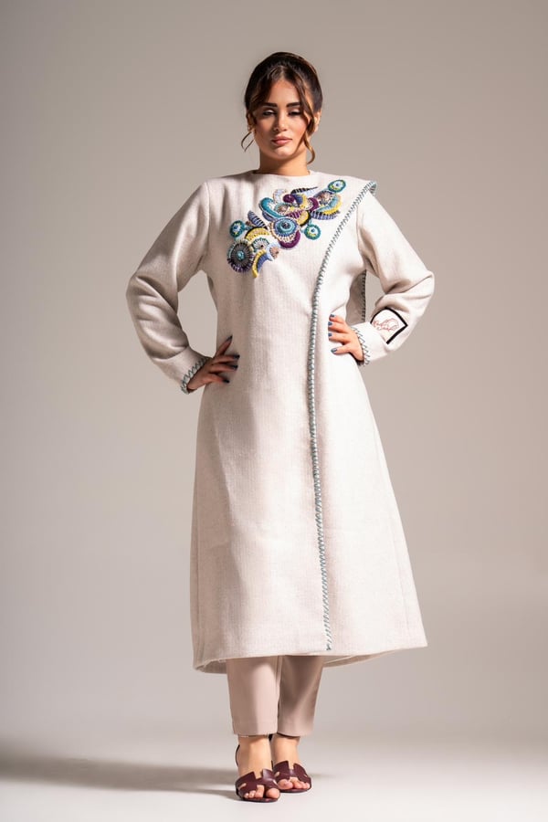 Felt jacket embroidered with threads and stones