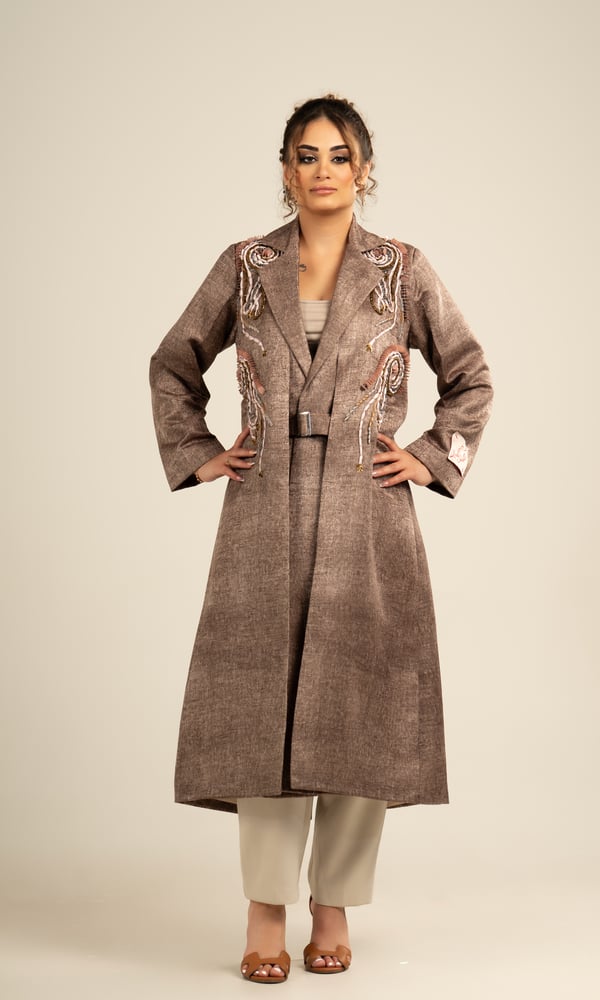 High-end jacquard fabric embroidered and embroidered with threads, beads and distinctive stones