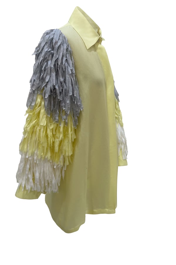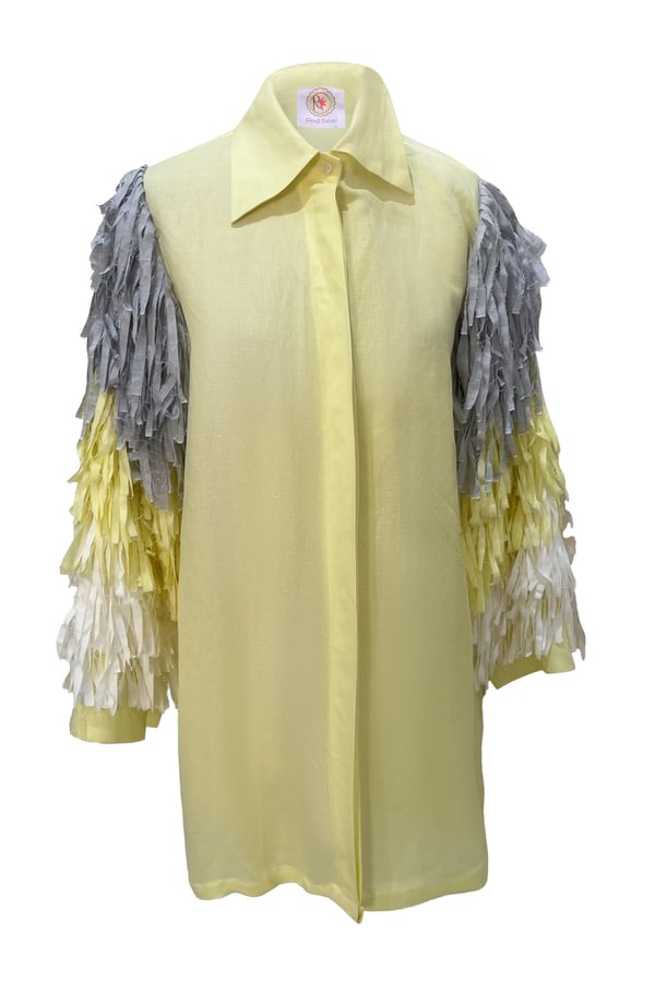 Linen shirt with sleeves decorated in three colors