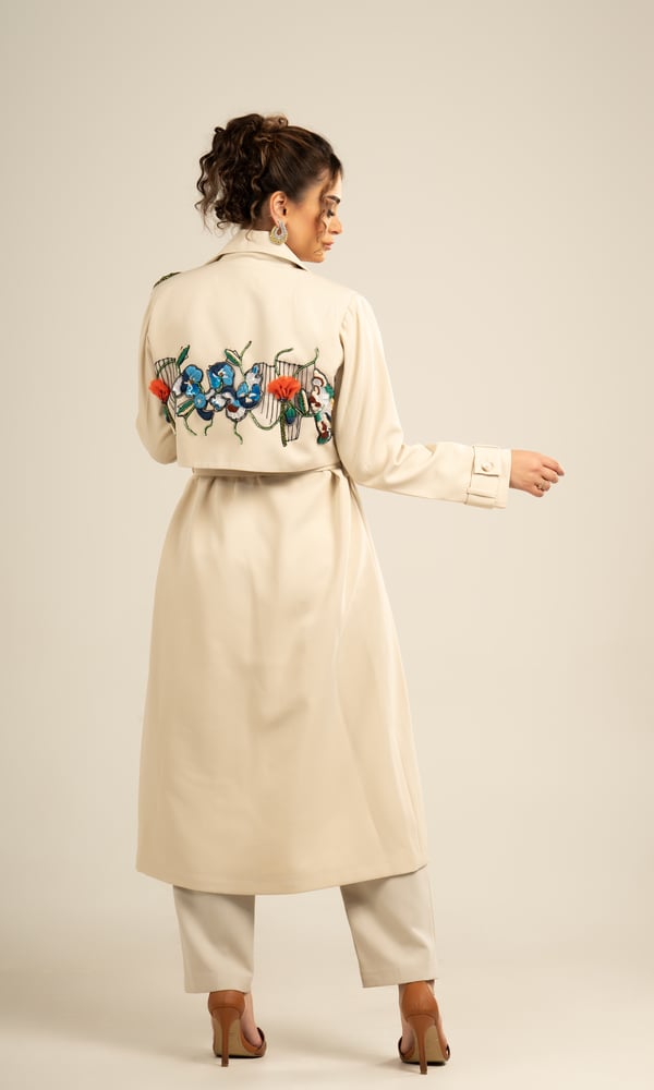 Long crepe jacket with a Gazar rose on the chest, beaded on the sleeve and beautiful engravings on the back