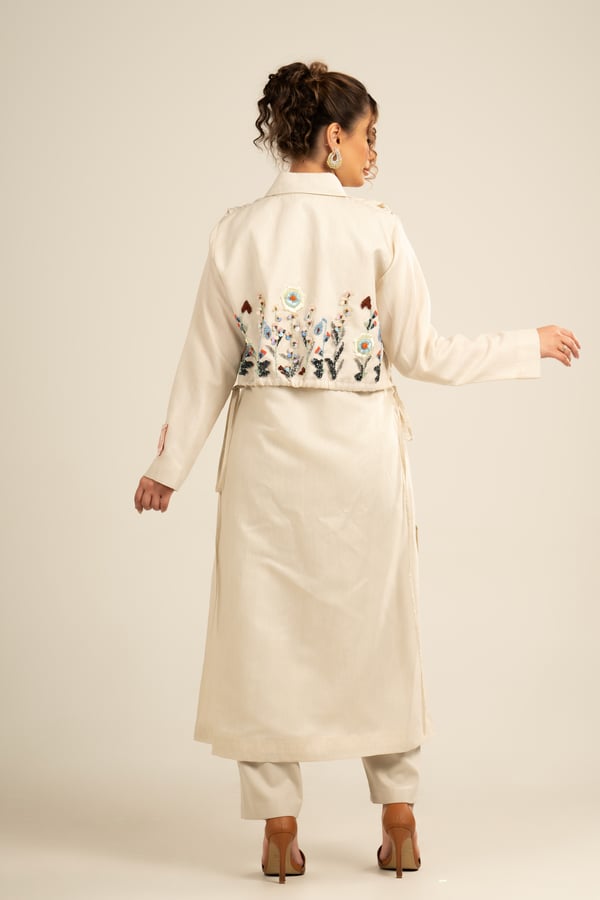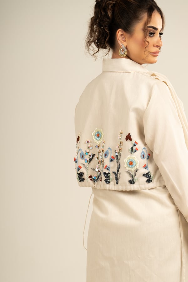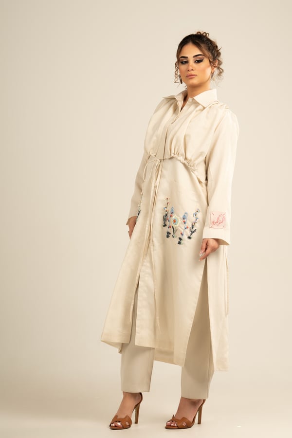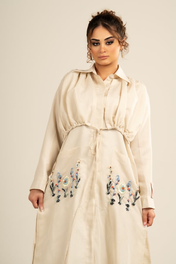 Long shirt made of Italian linen fabric, embroidered with beads and beautiful patterns on the back and on the pockets
