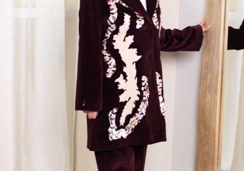 Nude blazer with black velvet embro...