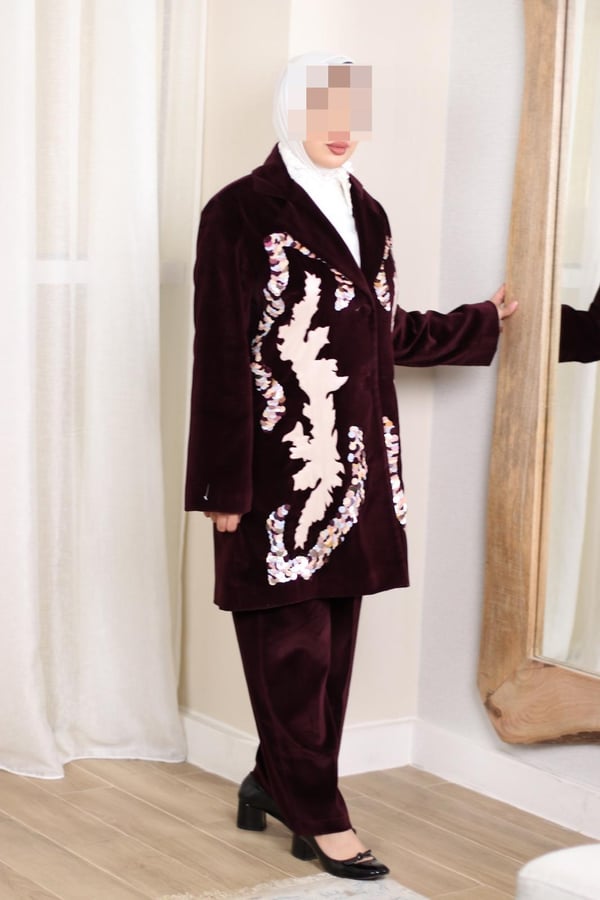 Maroon velvet trousers