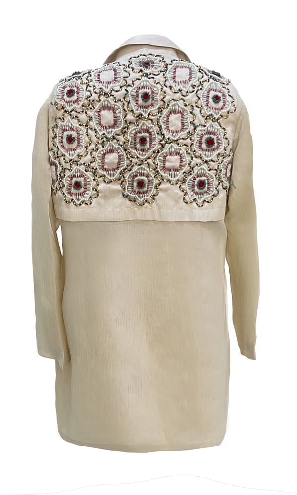 Linen shirt with sleeves decorated ...