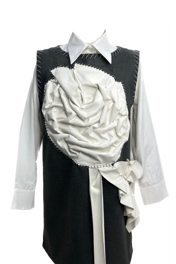 Two-piece shirt with prominent leather