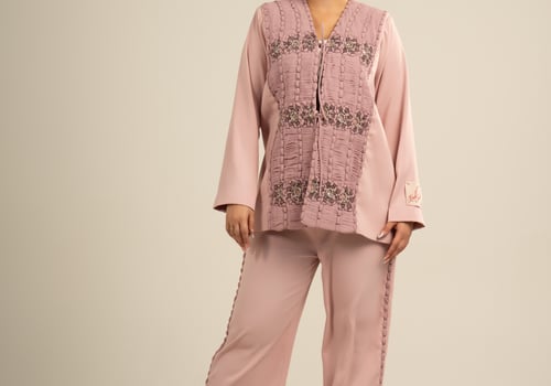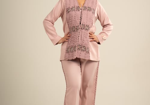 Two-piece suit, pants and blazer, embroidered with patterns, chiffon and embroidered crystals
