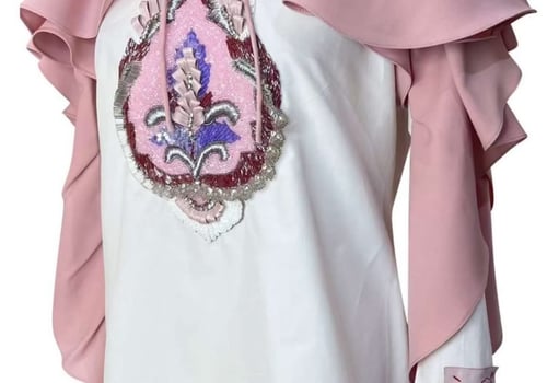 White cotton shirt embroidered with beads and crepe fabric on the sleeves